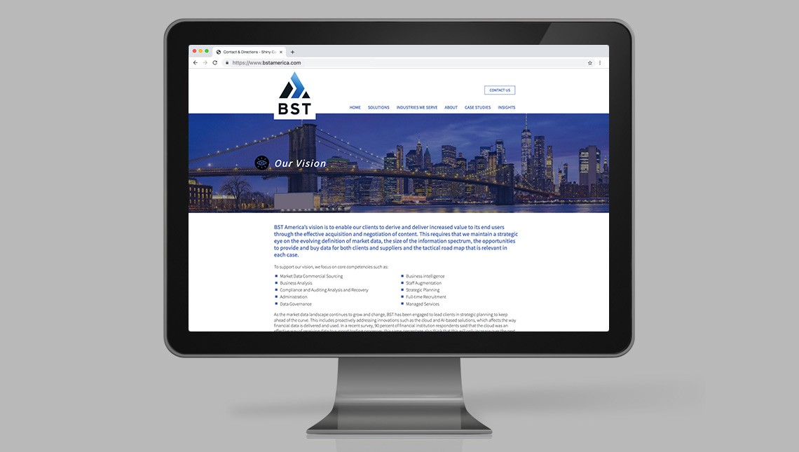 CS Designworks was tasked with developing a new online presence for BST, a 21-year-old firm. The goal was to communicate its history, promote its highly qualified talent and showcase its successful track record.